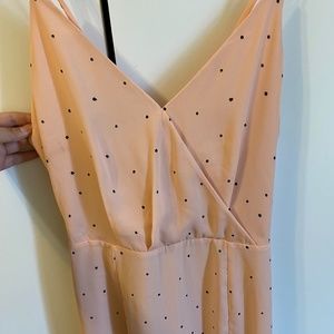 Midi Pink dress with black polka dots with straps and slits SIZE M