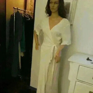 Midi white beach wedding wrap A line flared ruched short sleeve dress M