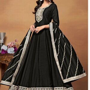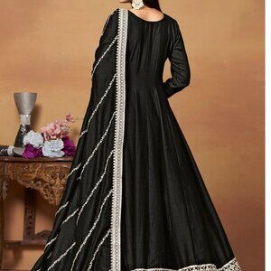 Midnight Majesty Art Silk Black Embroidered Festive Anarkali Suit