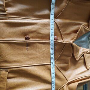 This beautifully crafted vintage Allied Western jacket is made from genuine deerskin leather in a warm tan shade. It features a smooth texture, wide 1970s-style collar, three-button front closure, and deep front patch pockets. The deerskin is soft, supple, and high-quality, showcasing natural grain and excellent craftsmanship typical of Allied Western garments.