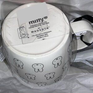 Authentic large capacity all white Miffy mug with signature Miffy design by Dick Bruna. Embossed 3D bunny heads all around the mug (texture, not a flat image print). Comes with matching cup lid with Miffy head figure. Miffy by Magenta.