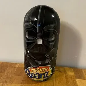 Star Wars themed Mighty Beanz Darth Vader case filled with various Mighty Beanz (original, Marvel, DC). Features iconic character design. Perfect for collectors and fans.