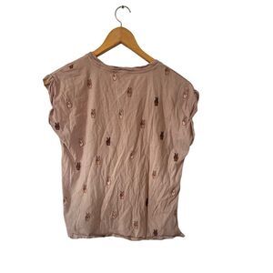 Mighty Fine Tan Peace Sign Graphic Cap Sleeve T-Shirt
