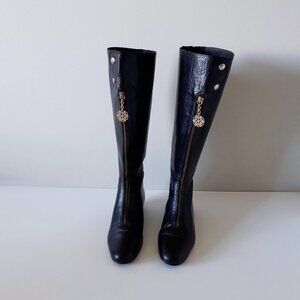 Migliorini black Italian leather riding long boot with gold detailing