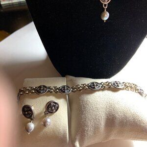 Mignon Faget Romanesque Sterling Silver 925 Pearl Necklace Earrings Bracelet Set