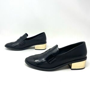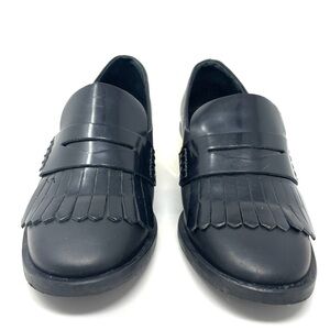 Miista Black Leather Kiltie Fringe Penny Loafers Size 36