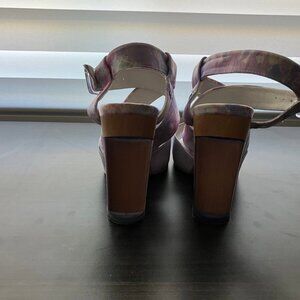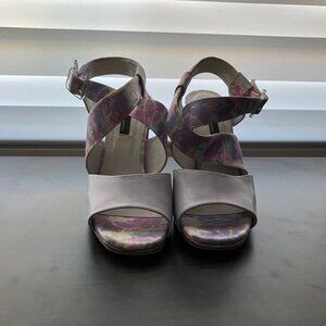 Miista Sarah Leather Cross Strap Block Heeled Sandals, Opal Water colour, size 9.