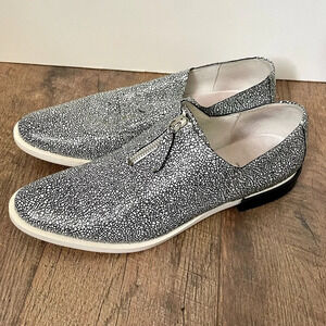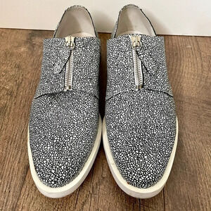 Miista London Speckled Zip Up Loafer Shoes. Super cute white and black speckled pattern. Zip detail up the front. Lightweight upper. European size 40 which is equivalent to a size 9.5 US. Good used condition, some minor wear as you can see on the soles.