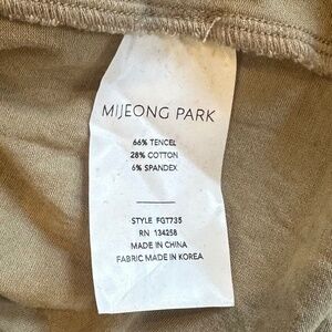 66% Tencel, 26% Cotton, 6% Spandex. Hand wash cold.