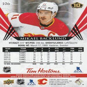 Mikael Backlund - 2024/2025 Tim Hortons Series 10th Anniversary Edition Card