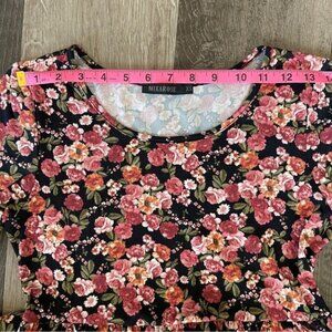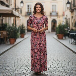 Mikarose Floral Black-Pink Short Sleeves Maxi 53” Dress Size XS