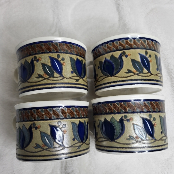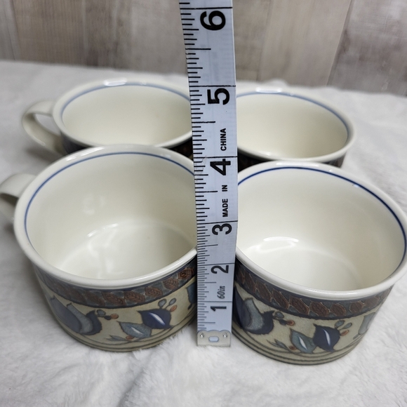 Mikasa Intaglio ARABELLA Floral Blue and Brown Ceramic Mugs Set Of 4.