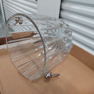 This ice bucket is made from genuine lead crystal, known for its exceptional clarity, brilliance, and weight. The metal lift rings provide durability and a polished look while remaining functional.