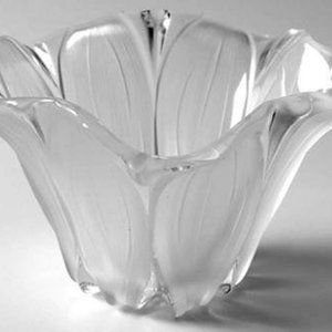 Frosted crystal with a sunflower design.