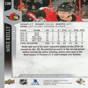 Mike Reilly (Senators) 2020/2021 Upper Deck Series 1 Hockey Card - Number 130