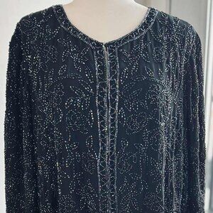 Milano Black & Iridescent Botanical Hand-Beaded Evening Jacket – US 2X