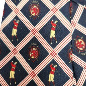 Milano Immagine Golf Necktie Men's Novelty Golfer and Crest Tie Blue White Red