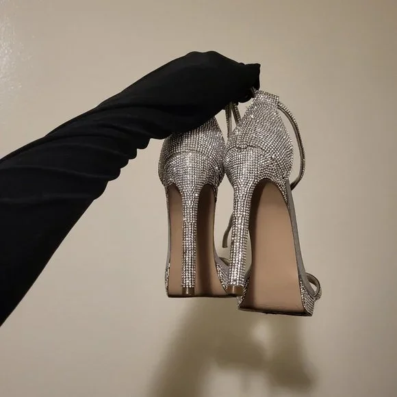 Dance the night away in these silver gems, platform strap heel shoes. Perfect for a night out or a wedding!!!