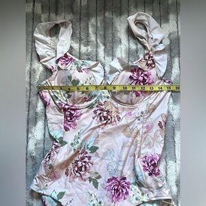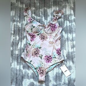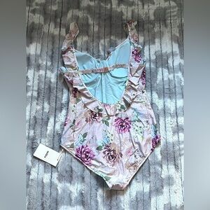 Milea Desert Rose Frill One Piece with; Gorgeous frill one piece Secure clip back Frilled neck & back detail Stunning low scooping back Best suited to a B-C cup size Made from Nylon/ Elastane blend
