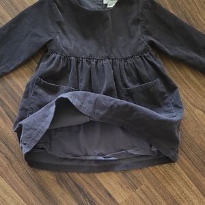 Chic cord dark gray dress with long sleeves and front pockets. Perfect for any occasion.