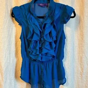 Miley Cyrus & Max Azria Blue Ruffled Blouse