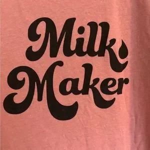 Our signature Milk Maker© design screen printed in black on a pink tee.