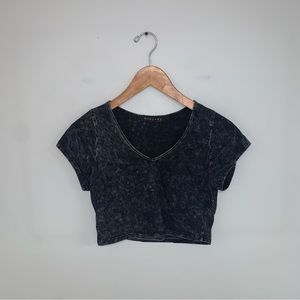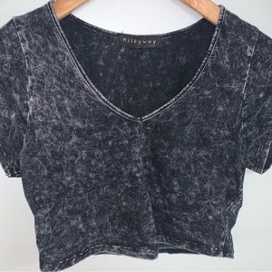Milkyway Short Sleeve Crop Top Women's Size Medium Black Grey Acid Wash Shirt