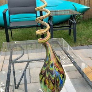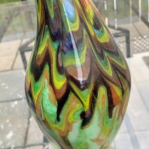 Millefiori Murano Italy hand-blown vase, 17", green, pink, black, blue, twist