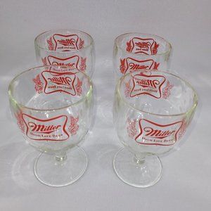Miller High Life Vintage Beer Goblet Set 4 Mug 6.25" Carnival Glass 1970s Bar