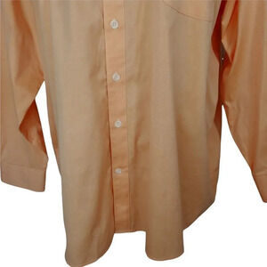 Orange-peach coloured button casual/work dress shirt. Collared. Front pocket.