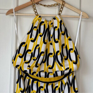 Milly Chain Link Halter Navy & Yellow Women’s Size 4 sheath dress backless sexy