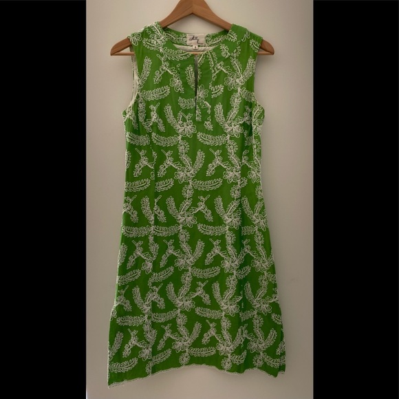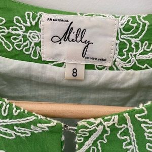 Great summer dress from Milly. 100 percent cotton, fully lined(all cotton) Always looks bright and cheery. Fully embroidered.
