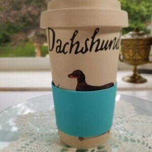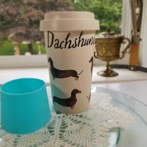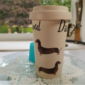 Milly Green British Design Dachshund travel tumbler.