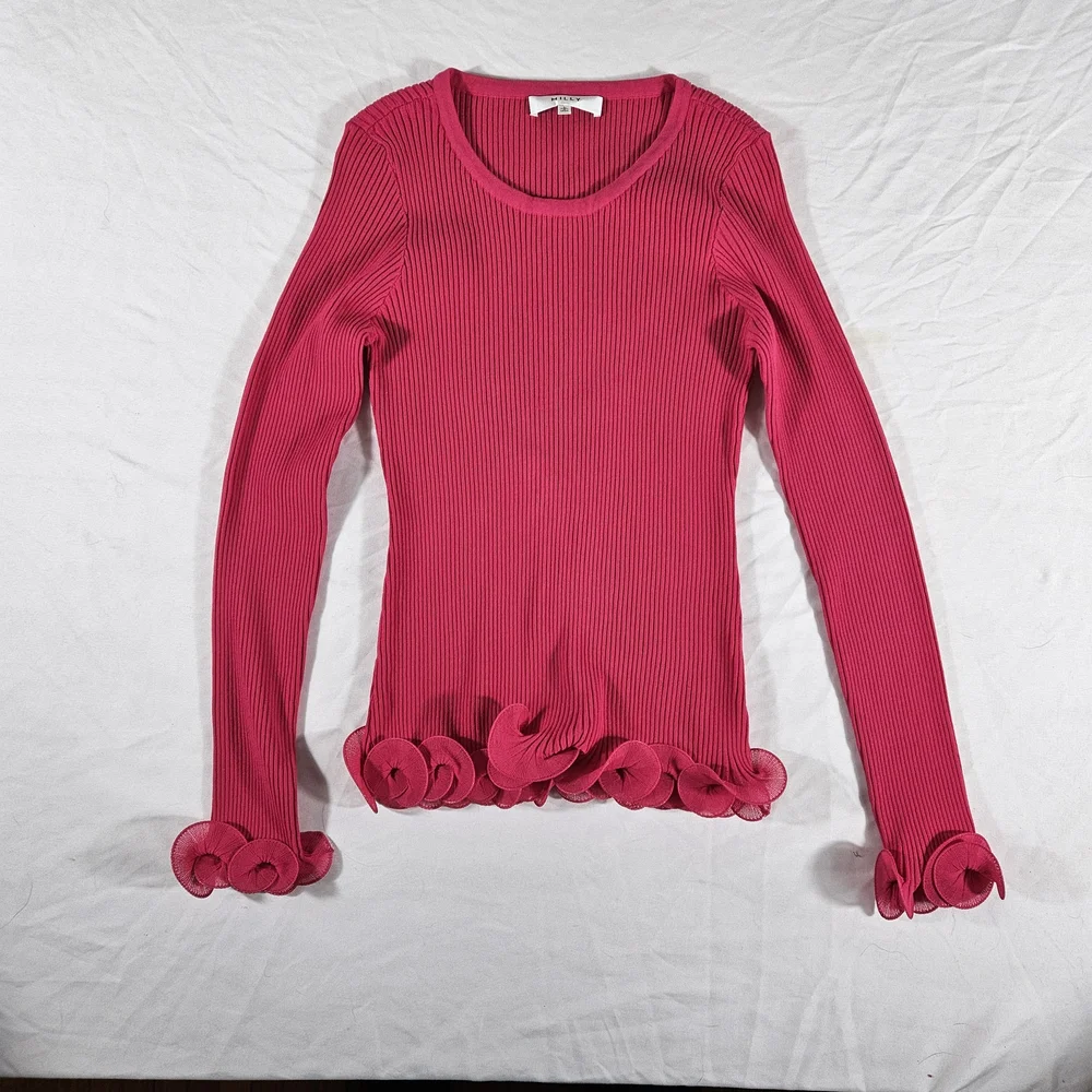 Milly Pink Ribbed Ruffle Cuff Blouse