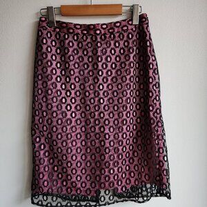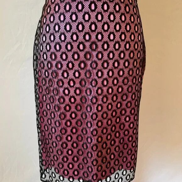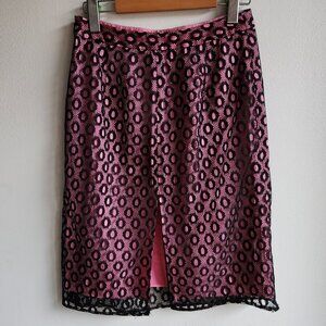 Milly of NY Pink Pencil Skirt with Black Openwork Lace - EUC - Sz 4