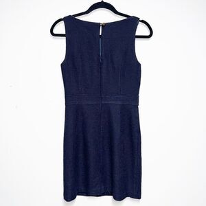 Milly of New York Navy Wool Textured Sheath Dress with Gold Chain Womens Sz 2