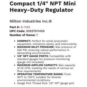 Milton Compact 1/4" NPT Mini Regulator – Heavy‑Duty Air Pressure Control