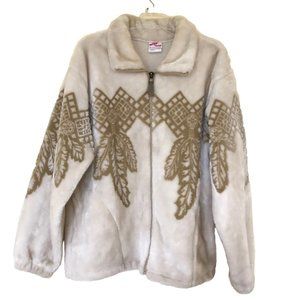 Milton Funwear Plush Fleece Jacket Cream & Beige Feather Design Oversized 90s