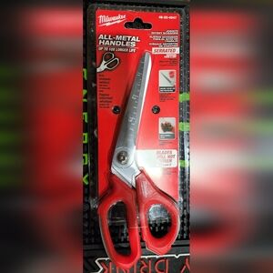 1 Set of Milwaukee scissors with all-metal handles. Includes one serrated and one smooth. chrome plated for rust protection
