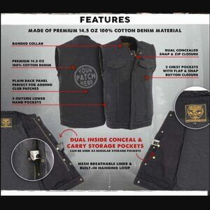 New, without tags, Milwaukee Leather black denim vest, size 7XL. Please see the last photo for sizing. Smoke free/pet friendly home. Thanks for your time!