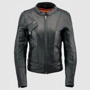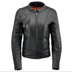 Milwaukee Leather Jacket Women's Size X-Small Goatskin Leather MLL2571 Black 'Crinkled Arm' - Motorcycle Bomber Racer