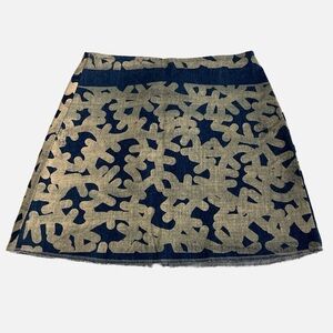 Mimi Oz Denim Mini Skirt Handmade Size Small Blue Beige One of a Kind NWT