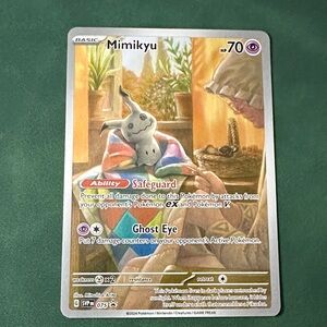 Discover the enchanting Mimikyu card, featuring a colorful and detailed design. A must-have for any enthusiast.