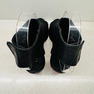 Mimosa Black Genuine Soft Leather Shoes Peep Toe Stacked Heel Sandals Sz 37