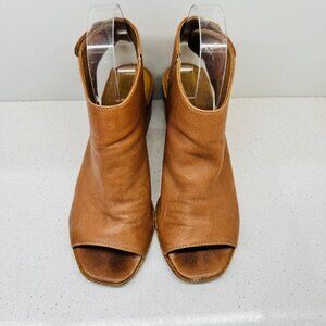 Mimosa Tan Camel Genuine Soft Leather Shoes Peep Toe Stacked Heel Sandals Sz 37