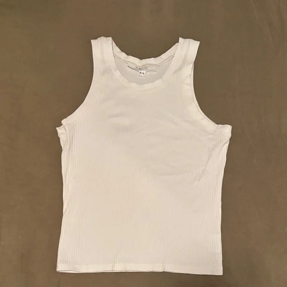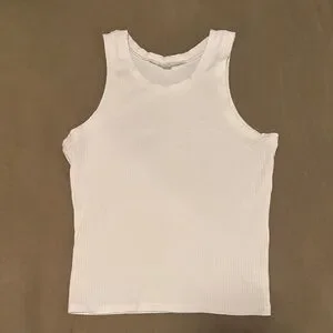 Stylish white ribbed tank top. Perfect for casual wear. Made in Quebec. Worn once, excellent condition.