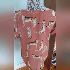 Mine Ladies short sleeve top with allover cheetah print