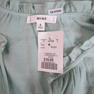 This charming top is a breezy and feminine piece, perfect for warm-weather styling. Crafted in a soft pastel blue/green fabric, it features a relaxed, airy silhouette that gently skims the figure. The delicate ruffle detailing along the cap sleeves adds a playful and romantic touch, while the gathered neckline with a small keyhole opening lends a subtle hint of vintage elegance. The lightweight texture and flowy drape make it ideal for casual days or dressed-up evenings, easily paired with skirts, jeans, or tailored trousers. Whether tucked in or left loose, this top exudes effortless grace with a touch of whimsical charm. This item is new with tags attached.