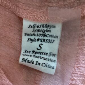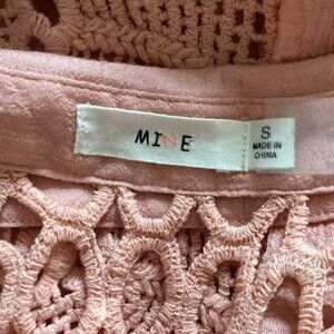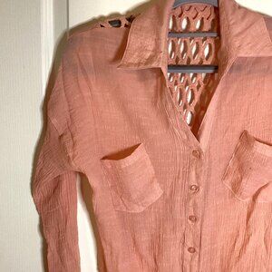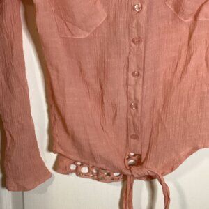 Mine Women's Crochet Back Semi Sheer Top Peach Blouse Size S Roll-up Sleeves