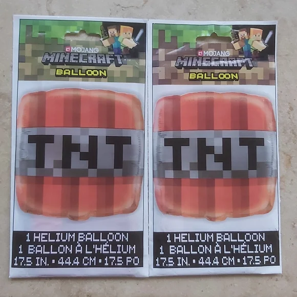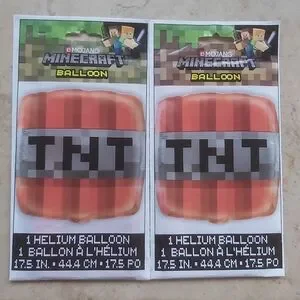 Two Minecraft-themed helium balloons featuring TNT design. Perfect for parties and events.